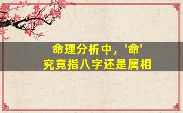 在命理分析中,“命”是一个多层次的概念,不同流派和传统对其定义有所差异,但通常以八字(四柱)为核心,属相(生肖)仅作为辅助参考。以下是具体分析: