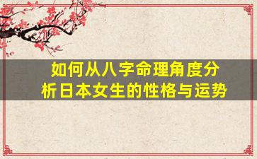 从八字命理角度分析日本女生的性格与运势,需结合其出生时间(年、月、日、时)对应的四柱八字(天干地支)、五行生克、十神关系以及大运流年等因素。以下是具体的分析框架和注意事项: