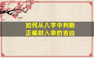 从八字命理中判断正偏财入命的吉凶,需结合十神特性、五行生克、宫位组合及大运流年综合分析。以下是具体步骤和要点: