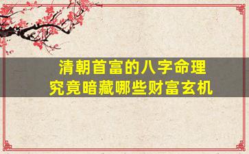 关于清朝首富(如胡雪岩、伍秉鉴等)的八字命理与财富玄机,传统命理学常通过分析其生辰八字的五行生克、十神配置、大运流年等要素,解读其财富积累的命理逻辑。以下是从命理学角度的一种可能性分析框架,需注意此类解读属于文化探讨,并非科学验证: