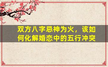 八字分析需结合具体命局,以上方法为通用建议。若双方其他五行搭配良好(如一方火为忌但另一方火弱),冲突可能减轻。建议提供完整八字给专业命理师,针对性地制定化解方案。