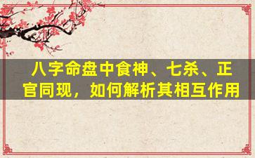 在八字命理中,食神、七杀、正官同现时,其相互作用需要结合十神特性和五行生克关系综合分析。以下是具体的解析思路: