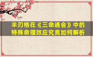 在《三命通会》中,羊刃格作为特殊命格之一,其命理效应需结合五行生克、神煞配合及全局结构综合解析。以下是其核心要点的系统分析: