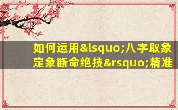 运用“八字取象定象断命绝技”精准预测命运,是传统命理学中的一种高阶分析方法,其核心在于通过八字(四柱)中的天干地支、五行生克、十神配置等元素提取关键“象”,并结合现实逻辑进行综合判断。以下是系统化的步骤和方法:
