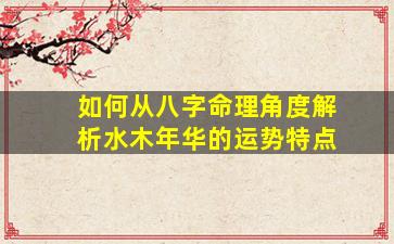 从八字命理角度解析“水木年华”的运势特点,需结合五行生克、十神组合及大运流年等要素。以下为系统性分析框架: