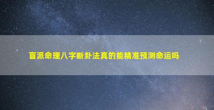 关于盲派命理八字断卦法是否能精准预测命运的问题,需要从传统文化、现代科学以及个人认知等多个角度综合分析:
