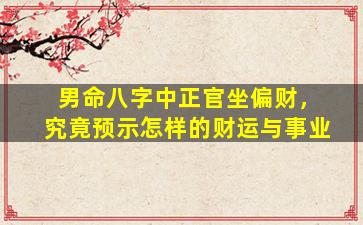 在八字命理中,“正官坐偏财”是十神组合的一种,需结合八字整体格局、五行生克及大运流年综合判断。以下是针对男命此配置的财运与事业分析: