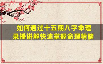要通过十五期八字命理录播课程快速掌握命理精髓,需结合系统性学习、实践应用和关键思维提炼。以下提供一套高效学习方法: