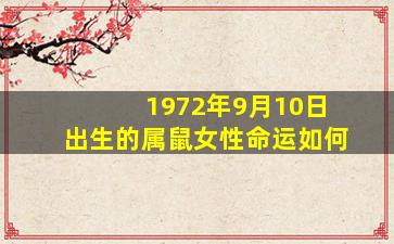 根据中国传统命理学(八字、生肖等),一个人的命运受出生时间、生肖、五行等多重因素影响。以下是针对1972年9月10日出生的属鼠女性的综合分析,需注意这些内容仅供参考,切勿过于依赖。