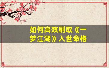 在《一梦江湖》中,"入世命格"是角色成长的重要系统,通过不同的命格选择可解锁剧情、属性和奖励。高效刷取命格需要结合游戏机制和策略性操作,以下是具体方法:
