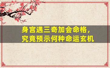 在紫微斗数中,“身宫遇三奇加会”是一种较为特殊的命理格局,通常指身宫同时会照到“禄、权、科”三颗吉星(即化禄、化权、化科)。这种格局往往被视为大吉之兆,但具体影响需结合命盘整体结构来分析。以下是这一格局的常见解读: