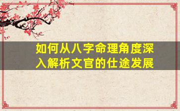 从八字命理角度解析文官的仕途发展,需结合命局格局、十神配置、五行生克及大运流年等要素综合分析。以下是系统的解析思路: