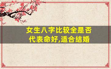 在传统命理学中,"八字比较全"通常指一个人的八字中五行(金、木、水、火、土)分布相对均衡,没有严重缺失或某一行过旺的情况。但需注意,八字是否"全"并不能直接等同于"命好"或"适合结婚",具体需结合八字的整体格局、用神、十神关系等多方面综合分析。以下是几点关键解读: