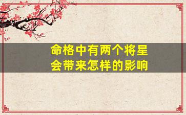 在传统命理学中,“将星”是八字神煞之一,象征领导力、权威和军事才能。命格中出现两个将星,其影响需结合八字整体结构(如五行强弱、宫位、其他神煞配合等)综合分析,但通常有以下几种可能: