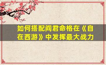 在《自在西游》中搭配“阎君命格”以发挥最大战力,需要结合命格特性、阵容搭配、装备选择以及技能联动等多方面因素。以下是具体建议: