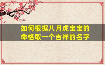 根据传统命理学和生肖文化,为八月出生的虎宝宝取吉祥名字需结合五行、生肖喜忌、月份特性及音形义等方面。以下是为您整理的命名建议和示例: