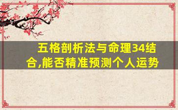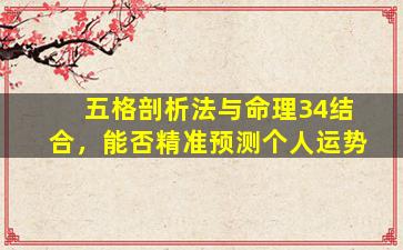 关于“五格剖析法”与“命理34结合”能否精准预测个人运势的问题,需要从传统命理学、现代科学视角以及文化背景等多个维度进行分析。以下是综合解答: