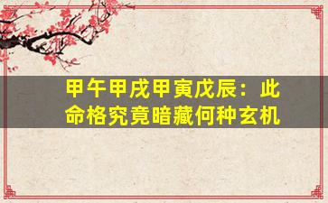 天干三甲木并排,地支寅木为日主强根,形成「三朋连珠」的特殊格局,木势独大。