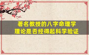 关于“著名教授的八字命理学理论是否经得起科学验证”这一问题,需要从科学方法论、命理学的本质以及现有研究证据等多个角度进行客观分析: