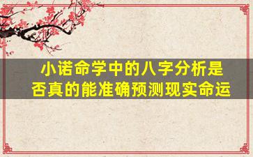 关于八字命理(小诺命学)是否能准确预测现实命运的问题,需要从多个角度理性分析: