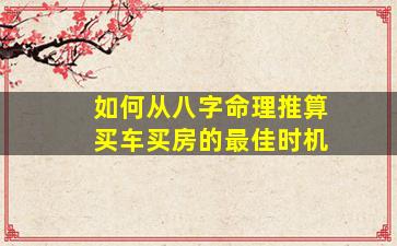 从八字命理推算买车买房的最佳时机,需结合命局中的五行生克、大运流年与财官印星的关系,以及不动产(土)、交通工具(金、水)的象征意义。以下是具体分析方法: