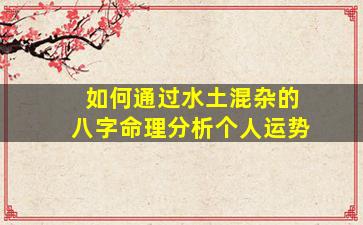 通过八字命理分析个人运势时,若命局中出现“水土混杂”(即水与土两种五行力量交织且关系复杂),需结合五行生克、十神配置、格局清浊等综合判断。以下为具体分析步骤和要点: