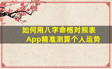 使用八字命格对照表App精准测算个人运势,需结合传统命理学原理与数字化工具的便捷性。以下是分步指南及注意事项,助您高效利用此类工具: