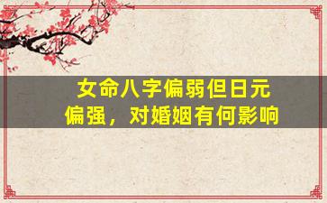 单从"偏弱"与"日元强"的矛盾表述难以定论,需结合夫星、婚姻宫、大运等综合分析。建议提供具体八字或咨询专业命理师,以获取更精准的婚姻趋势解读。