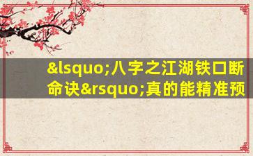 关于“八字之江湖铁口断命诀”或其他命理预测方法是否能够精准预测命运,可以从以下几个角度理性分析: