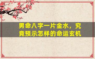 在八字命理学中,"一片金水"的男命通常指天干地支中金、水元素占据主导(如庚、辛、申、酉属金;壬、癸、亥、子属水),且缺少有效的五行制化。这种格局的玄机需结合具体组合分析,以下为一般性解读: