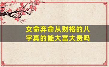 关于女命“弃命从财格”是否能大富大贵的问题,需结合八字命理的理论和实际案例综合分析,以下从格局特点、成立条件、现实表现等方面展开说明: