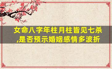 年柱、月柱双七杀确实提示感情需谨慎,但具体吉凶需看八字整体配置。命理是趋势而非定数,后天的人为选择与修养可极大改善运势。建议提供完整八字或咨询专业命理师深入分析。
