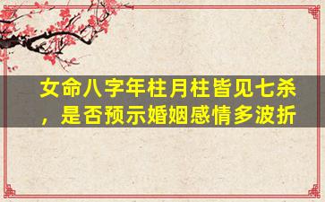 在八字命理中,七杀(偏官)代表压力、变动、竞争,以及非传统的感情关系。女命年柱、月柱皆见七杀,确实可能对婚姻感情产生一定影响,但需综合全局分析,不可单一论断。以下为具体解读: