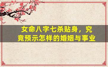 在八字命理中,"七杀"(又称偏官)是克日主且阴阳同性的十神,代表压力、挑战、竞争和魄力。女命八字若七杀贴身(如日支、月干、时干等近距离位置),确实会对婚姻和事业产生显著影响,但需结合八字整体格局、七杀强弱、制化情况等综合分析。以下为一般性解读: