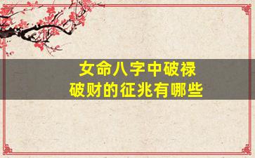 在八字命理中,“破禄”和“破财”是两种常见的不利征兆,尤其对女命而言,可能暗示事业、财运或人际关系的波动。以下是具体的征兆及解读: