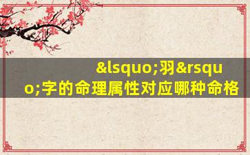在传统命理学(如八字、五行理论)中,每个汉字的结构和笔画常被用来分析其五行属性,进而关联到个人的命格特质。关于“羽”字的命理属性,通常有以下几种解析方向: