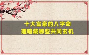 关于“十大富豪八字命理共同玄机”的探讨,需结合传统命理学理论和部分公开案例的共性特征进行分析。需注意,命理分析存在主观性和概然性,以下为归纳出的部分规律性特点(仅供参考):