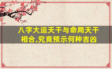 在八字命理中,大运天干与命局天干相合(即“天干五合”:甲己合、乙庚合、丙辛合、丁壬合、戊癸合)是重要的命理现象,其吉凶需结合具体命局、五行喜忌及合化结果综合判断。以下是关键分析要点: