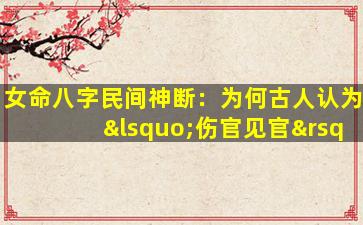 古人关于“伤官见官,为祸百端”的论断,是传统命理学中颇具争议的命题,尤其针对女命常被强调。这一观点的形成,既有命理逻辑的推演,也深受古代社会文化的影响。以下从多角度解析其根源: