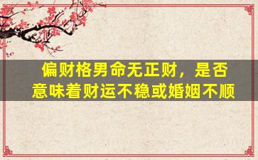 在八字命理中,"偏财格男命无正财"确实是一个值得探讨的格局,但其对财运和婚姻的影响需要综合分析,不能简单定论。以下是专业角度的解读: