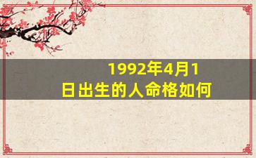 根据中国传统命理学(八字算命),一个人的命格由出生年、月、日、时的天干地支(共八个字)组成,需结合五行生克、十神、大运等综合分析。由于您未提供具体出生时间(时柱),以下为1992年4月1日(公历)的初步推算,供参考: