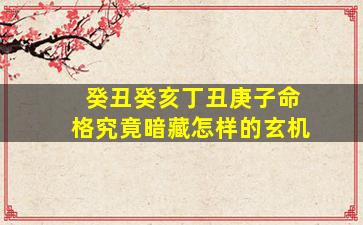关于“癸丑 癸亥 丁丑 庚子”这一命格的玄机,我们可以从八字命理的核心要素(五行生克、十神关系、格局喜忌等)进行专业分析,以下为逐步解析: