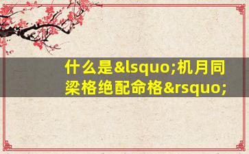 “机月同梁格”是紫微斗数中的一种命理格局,主要涉及天机、太阴、天同、天梁四颗星曜在特定宫位(通常为命宫、身宫或三方四正)的组合。这一格局被认为是相对温和、稳定的命格,以下是对其特点及“绝配”说法的解析:
