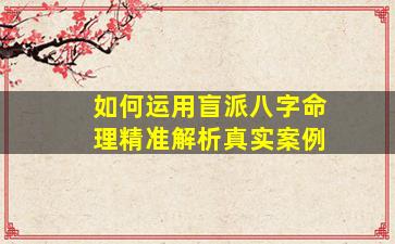 运用盲派八字命理精准解析真实案例,需要结合其独特的“象法”“口诀”和“实战技巧”,注重地支关系、刑冲合害等细节推演。以下是具体步骤和案例解析方法: