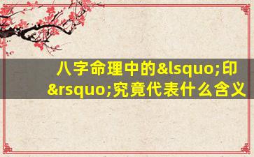 在八字命理中,“印”(又称“印星”)是一个重要的十神概念,主要代表学业、智慧、长辈、保护、贵人、名誉等含义,具体可分为正印和偏印(枭神)两类。以下是详细解析: