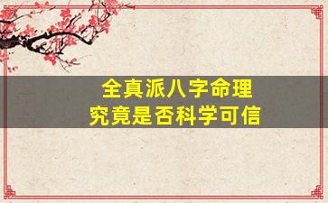 关于全真派八字命理是否科学可信的问题,需要从科学、哲学、文化实践等多个角度综合分析,以下是一些关键点供参考: