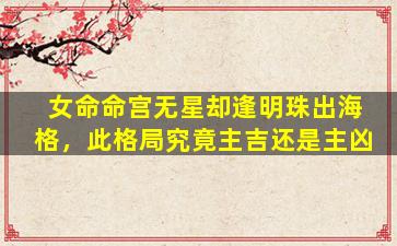 在紫微斗数中,“明珠出海格”是一个颇具争议的特殊格局,尤其当女命命宫无主星时,其吉凶判断需结合多方因素综合分析。以下是专业角度的解读: