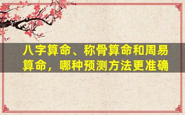 关于八字算命、称骨算命和周易算命的准确性问题,需要从历史背景、理论体系以及实际应用的角度进行客观分析。以下是三种方法的对比和理性思考: