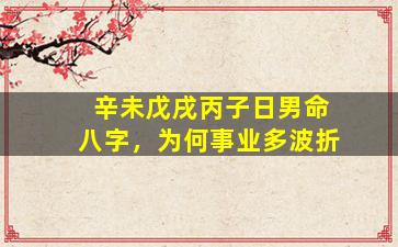 根据您提供的八字“辛未 戊戌 丙子”(年柱辛未、月柱戊戌、日柱丙子),现从命理角度分析事业多波折的原因如下: