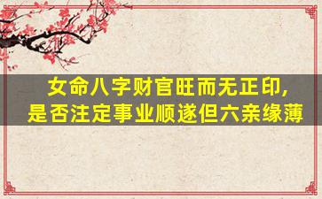 在八字命理中,"财官旺而无正印"的女命确实有其特殊的命理特征,但需结合整体格局综合分析,不宜简单定论。以下是具体分析: